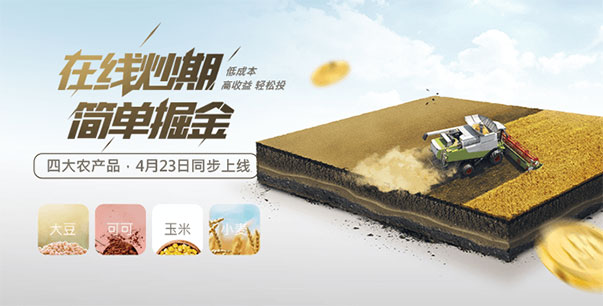 农产品上线 创富4月新产品上线,新增四项农产品(大豆、可可、玉米、小麦)上线交易。创富...